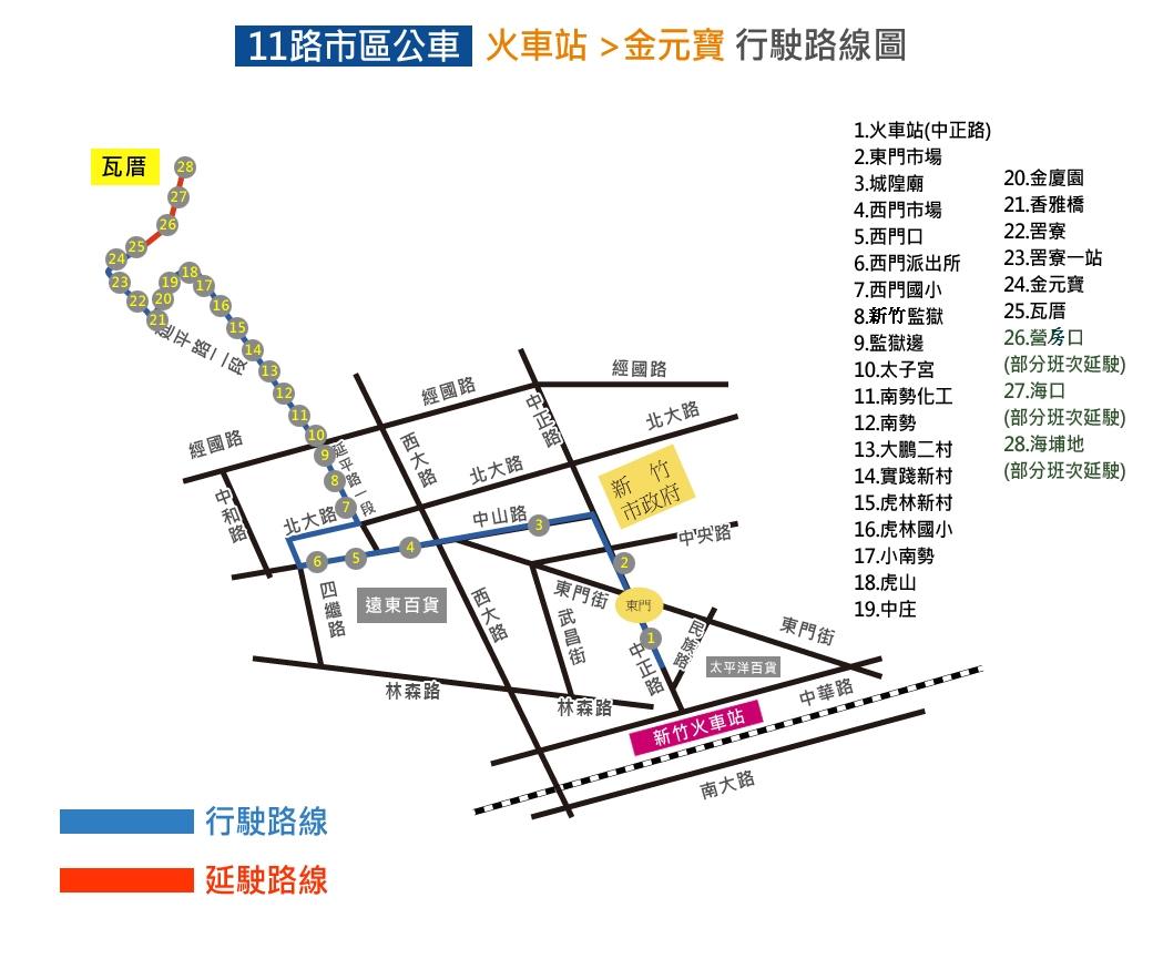 2.自102.12.1起為方便11甲旅客搭乘,原11路火車站開07:00、14:30時班次及海埔地07:30(延後至07:40)、15:00(延後至15:10)時班次配合改行11甲路線。 |