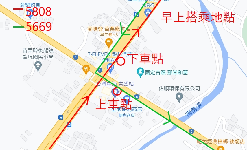 配合本公司5668A路線停駛及學生通學運輸需求,5669路線自112年2月20日起苗栗開16:40分及後龍開7:10分班次調整繞行苗栗農工行駛,轉乘5808路線往返通霄方式如下圖示說明,不便之處,敬請見諒。
