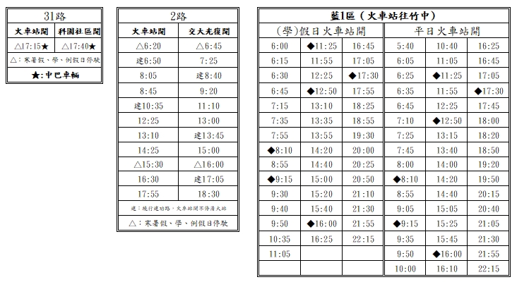 假日 火車站開15:30班次,交大光復開16:00班次。